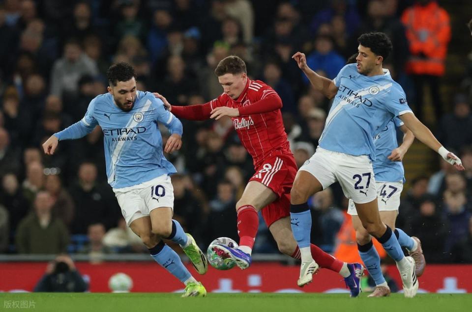 面对仍有保级之忧的诺丁汉森林,曼城其实踢得相当有耐心,塞梅尼奥和罗德里的进球,两次帮助曼城取得领先,但求生欲爆表的诺丁汉森林两次都扳平了。